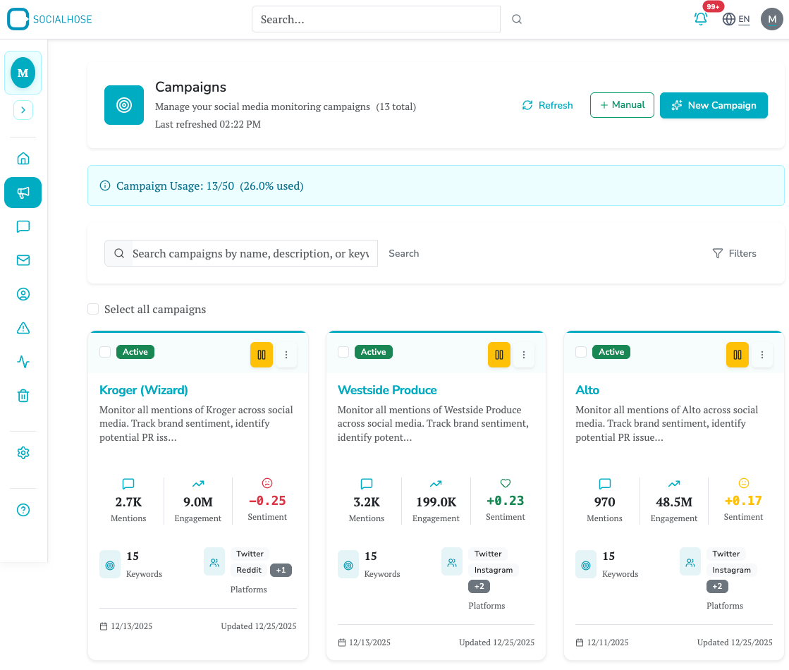 Before diving into the setup process, it helps to understand how Socialhose works at a fundamental level. The platform is built around three core concepts: campaigns, mentions, and alerts.