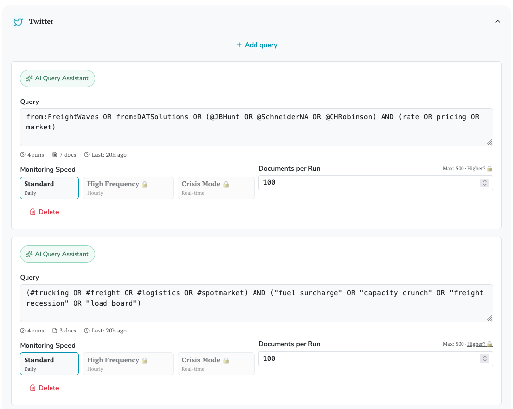 There are many social listening platforms that complicate the process of query building. That is, the search phrase and filters we use to pull data from Twitter/X.
